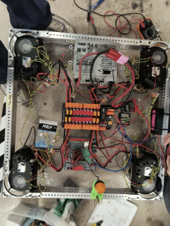 The electrical team also did temporary wiring of the drivetrain so programmers would be able to use and test with it: